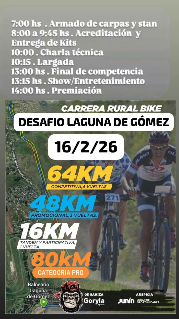 Rural Bike 8 de marzo de 2026 Lugar: Pdo. San Andrés de Giles, pcia. Bs. As. Organización: Ciclorural Giles Contacto: 2325-416464 (SEBASTIAN); 2325-597531 (FABIO) https://www.instagram.com/ciclorural.arg/