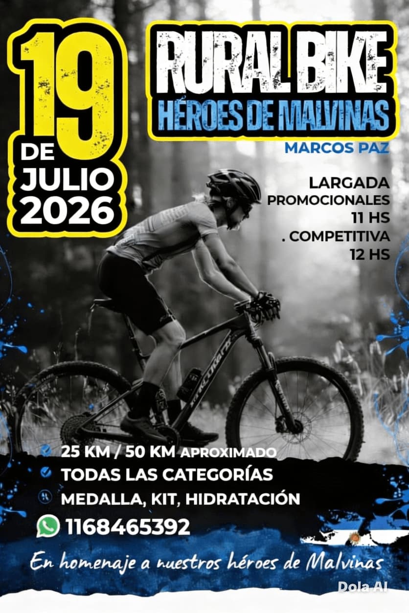 19 de julio de 2026 RURAL BIKE Lugar: Marcos Paz, pcia. Bs. As. Contacto: 1168465392 Inscripciones finishtime.com.ar